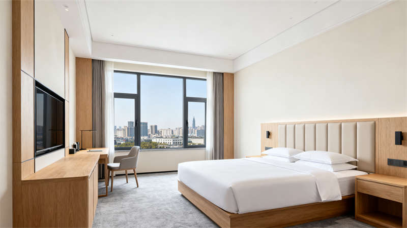 客房設計注重舒適與便捷,整體風格延續(xù)簡約風,家具選擇線條簡潔的款式,軟裝搭配以柔和的色彩為主,營造出寧靜放松的休憩環(huán)境,同時兼顧收納功能,讓客房空間整潔有序。?