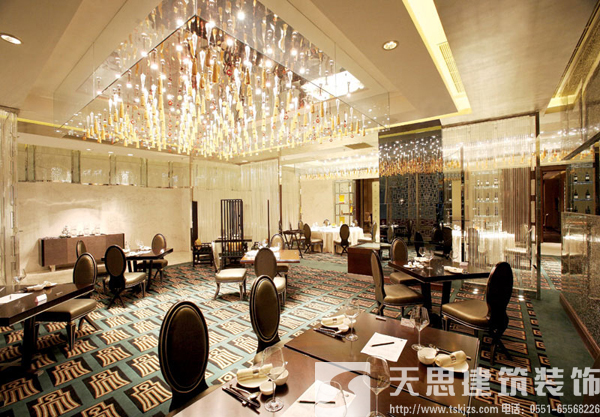 2,采用中式宮燈進(jìn)行重點(diǎn)照明。這種方法常結(jié)合頂棚造型,將燈具組合到造型中。這種方法適合于較高的空間,以及較為地道的中餐廳。這種傳統(tǒng)中式宮燈應(yīng)根據(jù)空間的高低來確定選用豎向還是橫向的燈具。另外,宮燈在大餐廳中的數(shù)量要恰當(dāng),不宜過多,否則,會(huì)造成零亂之感。