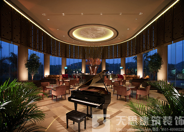 在會(huì)所裝修設(shè)計(jì)中,由于不同的使用要求,需要把一個(gè)大的空間分隔成許多相對(duì)獨(dú)立的小空間,該會(huì)所中庭充分地利用了地面高低錯(cuò)落的變化,形成了休息區(qū),庭院綠化區(qū)、酒吧區(qū)等虛擬空間。這些空間雖然沒(méi)有明顯的界面圍合,但實(shí)際上卻具備了使用功能的屬性,使人在心理上認(rèn)可它。被分割的小空間既分隔又相互聯(lián)系,很好地保持了實(shí)體空間的整體性。